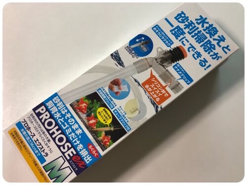 今更ですが、やっと買いました! 水作さんの『プロホース エクストラ M』! 今までは100均のこれを使ってました。 これでも使えてたんですがホースが短くてバケツを持ちあげて排水するのがかなり重労働でした(>_<) プロホースにしたらバケツを床に置いたまま…
