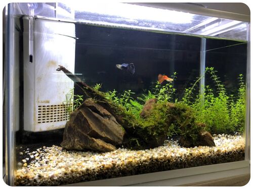 苔やらカビに悩まされてた40cm水槽。以前の記事で『生きてるバクテリア SUPER BICOM スターターキット』を投与しましたが、その後かなり良い感じです。どんよりしてた水がスキッとしました(^-^)v なのでグッピー2匹をこちらに移してみました。 まだ入れてか…